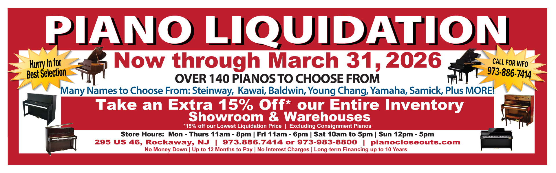 We personally offer our services to find the best piano for you, your family, church, or school. As a family-owned business and music educators with over 50 years of history in the piano world, we can identify your needs and help you select the right piano for you. Call 973-886-7414 for a Private Appointment.