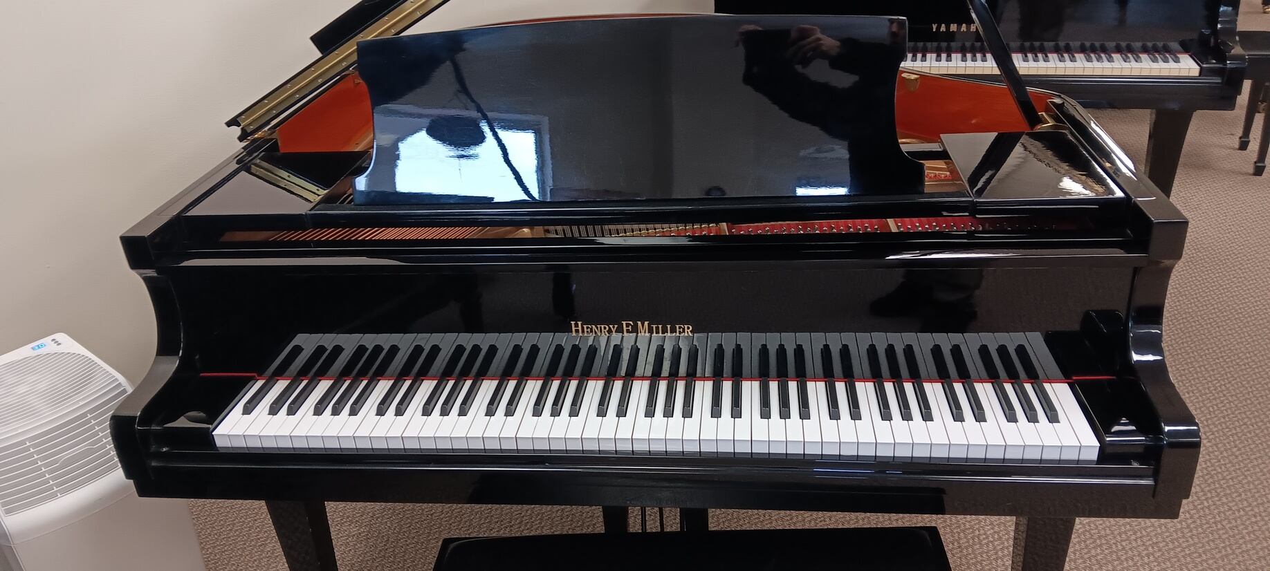 This modern piano comes from a rich history of American piano design and manufacture, spanning back to the mid 19th century. Beginning with Henry F. Miller, a classically trained musician who founded his company in Boston in 1863 and later moved production to Wakefield, Massachusetts with his five sons under the name Henry F. Miller & Sons by the 1880s. These instruments were known for their rich, warm tone, balanced action, elegant cabinetry, and solid construction, which made them popular with concert pianists, teachers, and music lovers in the late 19th and early 20th centuries. Early models included upright, grand, and square pianos, and the company even produced “pedal pianos” equipped with full pedal boards for organ practice. Vintage Henry F. Miller pianos were built with quality woods like solid spruce soundboards and robust frames, features that help well-restored examples remain in use today and appreciated for both musical and aesthetic value.