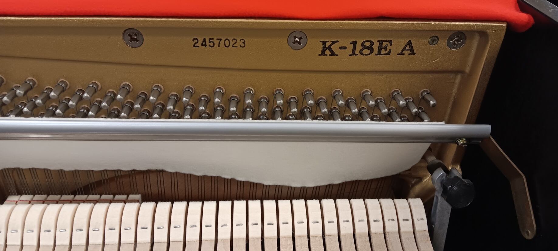 The K-18EA is a traditional studio upright piano model from Kawai. This instrument, made in Japan around 2004, features good tonal characteristics. Because of its reasonable size, it can deliver a richer bass and decent sustain compared to very smaller uprights. For example, one listing mentions it is big enough to provide a full rich bass with a long sustain but also having a lovely singing quality to its upper registers. Many owners and forums note that Kawai uprights tend to age gracefully, retaining tone and structural integrity better than many lower-end instruments. This one comes with a matching bench and an 8 year guarantee on parts and labor.