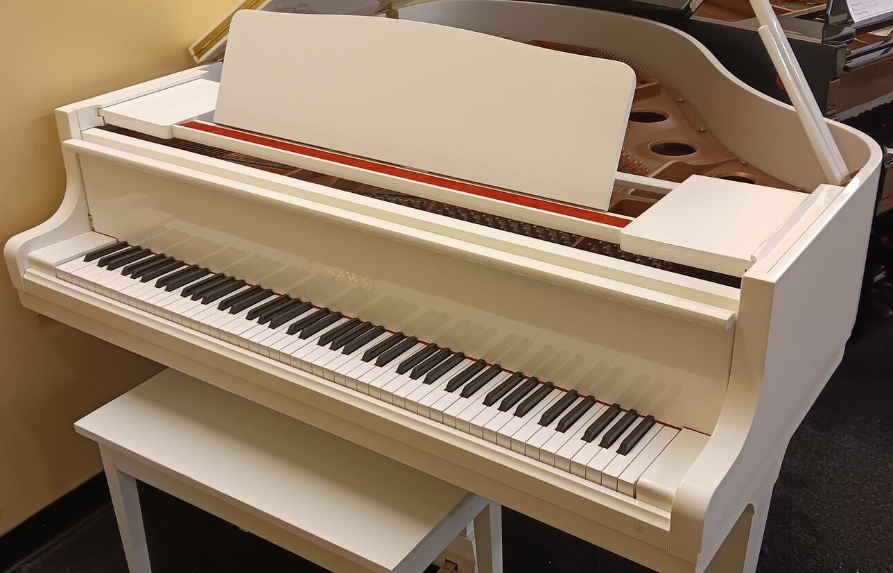 The Kawai GE-1 is a 5′ 1″ baby grand piano. It is an affordable instrument that is perfect for beginner pianists and those looking for a smaller piano to fit their space. Hand made in Japan, it features a full-length, 88-key keyboard and a powerful, and a responsive soundboard. The Kawai GE-1 is a great choice for those looking for a quality, affordable baby grand piano. It comes complete with a matching bench and a 6 year guarantee on parts and labor.
