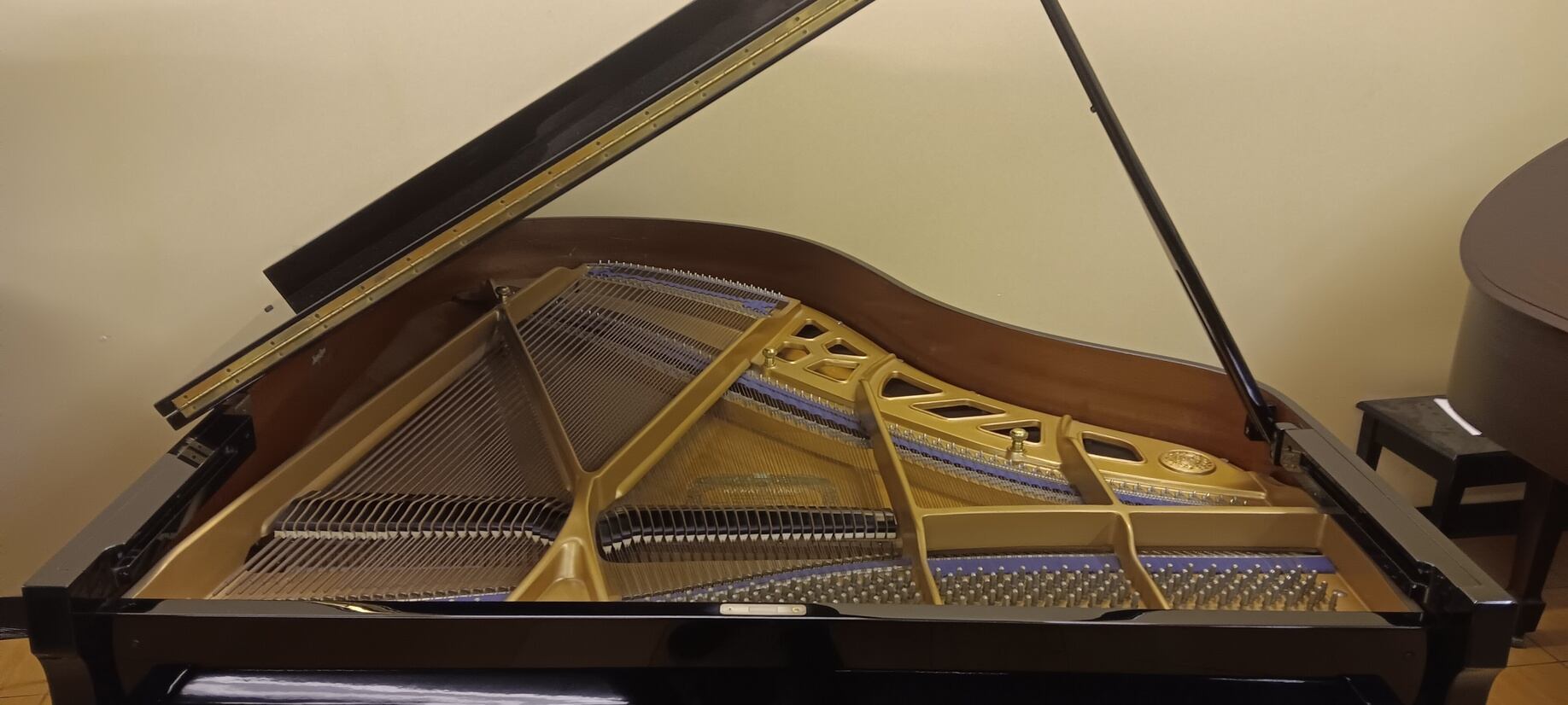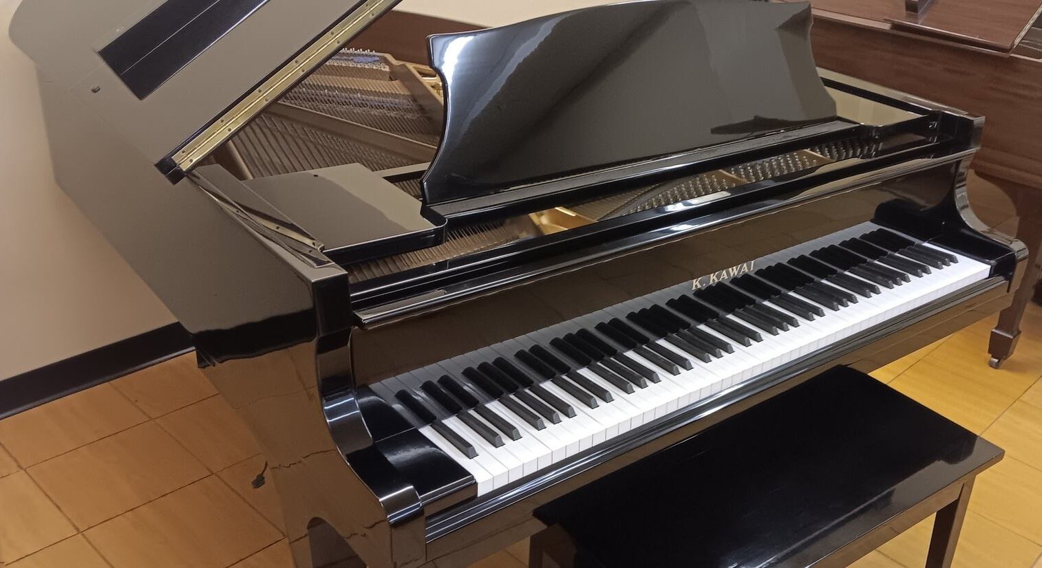 This is 5′ 10 1/2” grand piano is in excellent condition. It has been well maintained and has a rich, musical tone and excellent action. Kawai pianos are built with attention to detail and utilize quality materials. The KG-2D is likely constructed with a solid spruce soundboard, which contributes to its resonance and tonal quality. The rim is typically made from a combination of hardwoods to provide stability and support. This instrument is accompanied by a matching bench and a 6 year guarantee, parts and labor.