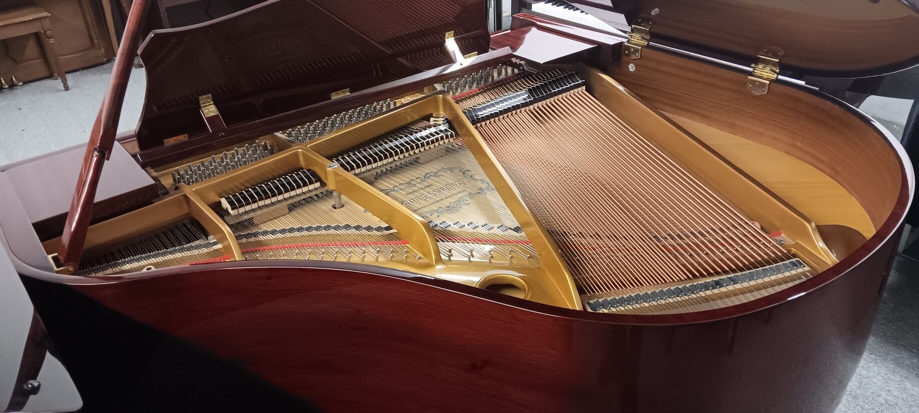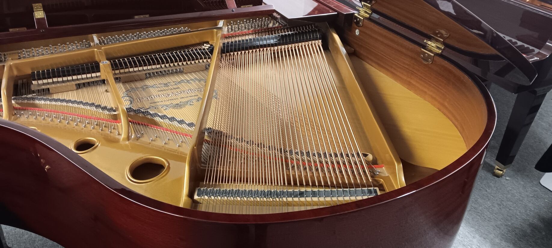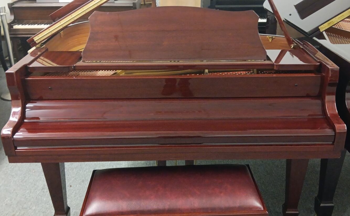 This preowned Kohler & Campbell 4′ 8″ Baby Grand Piano piano is a great choice for a beginner or experienced player. It features a classic and elegant design, with a polished mahogany finish that will look great in any home. The soundboard is made of spruce, and the action is all hard rock maple action parts, reliable and responsive, providing a great playing experience. It includes a matching bench and a 5 year guarantee on parts and labor.