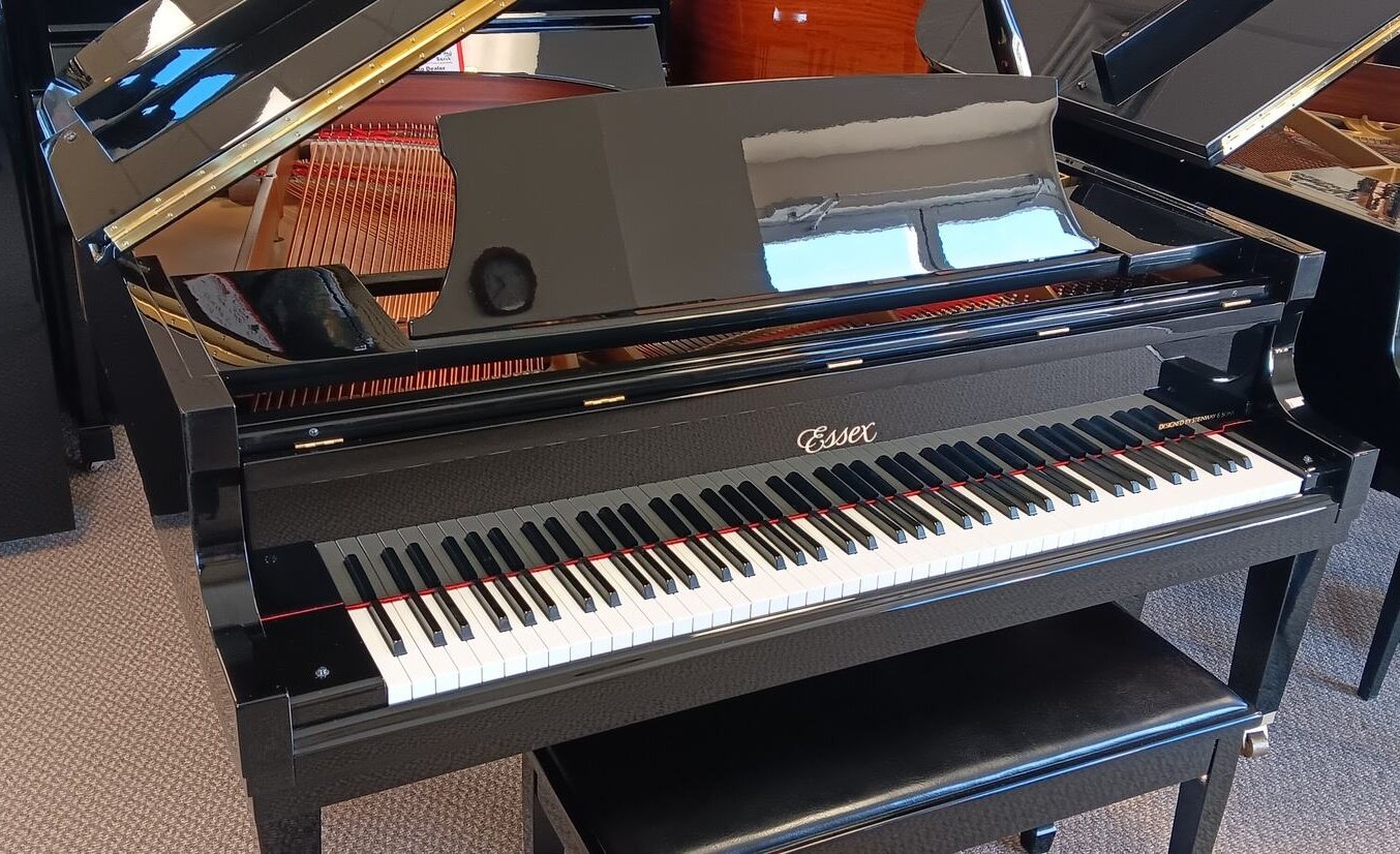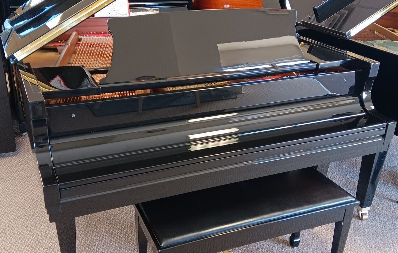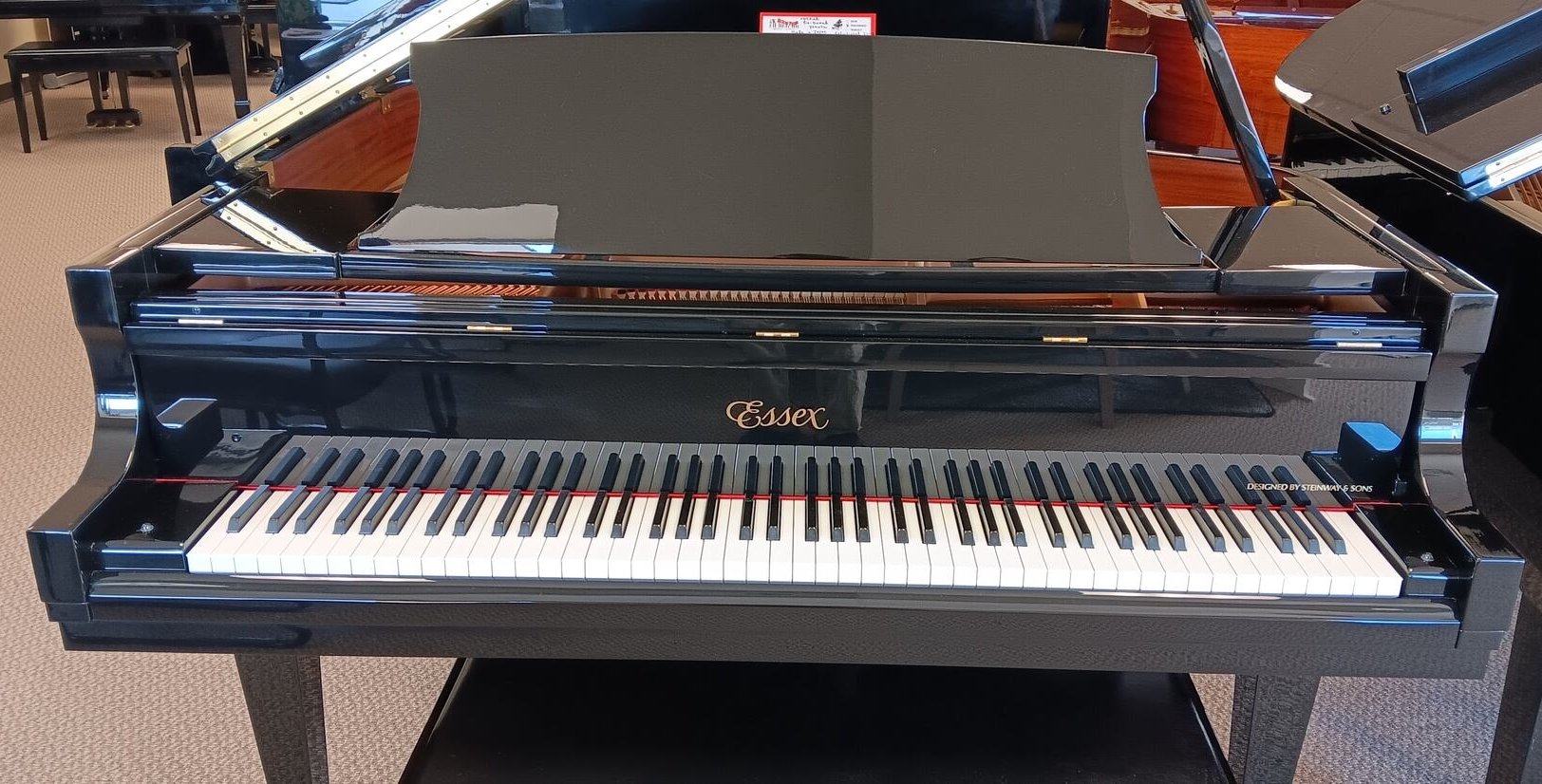 This baby grand from Steinway incorporates core elements of Steinway design such as a wide-tail cabinet that increases the soundboard’s surface area for richer tone, a solid, premium spruce soundboard with tapered profile for better vibration and dynamic volume, and Steinway-specified hammers and wooden action parts (no plastic) to support expressive playing and responsiveness. These features give Essex grands a sound and feel that reflect Steinway’s heritage while still being tailored for home pianists and students who want quality without significantly higher cost. It includes a slow close fall board key cover for safety. Constructed in 2022, it comes complete with a matching bench and a 7 year guarantee on parts and labor.
