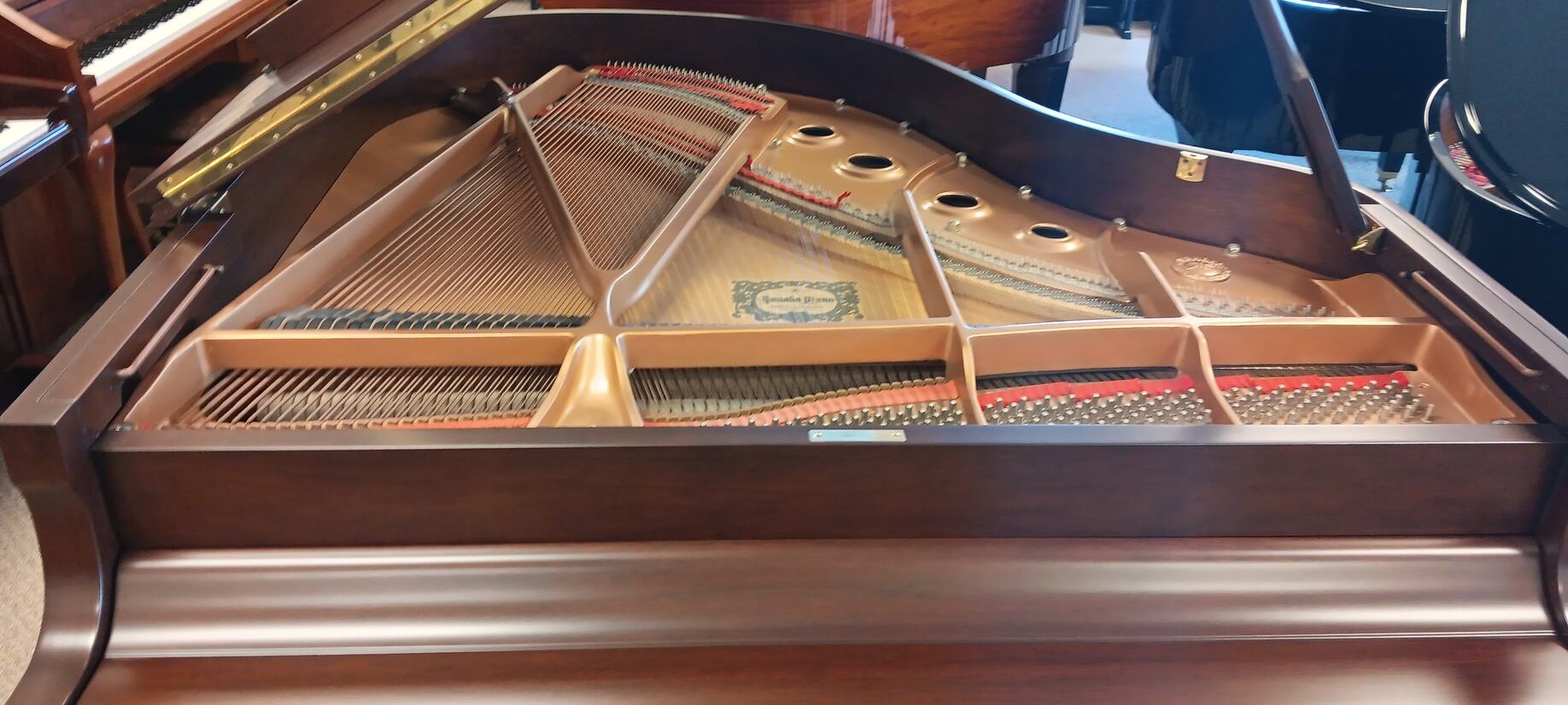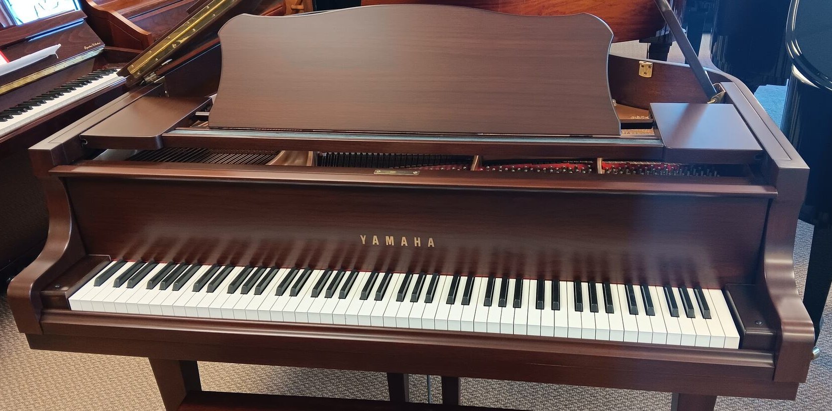 Save over $10,000 when buying this gently used, certified preowned Yamaha Conservatory grand piano. This instrument is in immaculate condition and has a beautiful tone…full of color, sustain and dynamic latitude. The Yamaha C series is their top-of-the-line Conservatory series, designed specifically for the most discerning pianists and music lovers. This is a great piano! This piano includes a matching bench and an 8 year guarantee parts & labor.